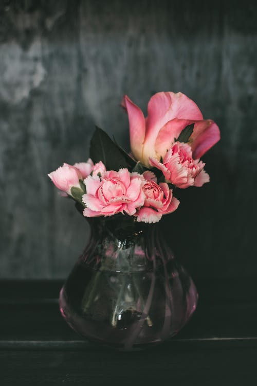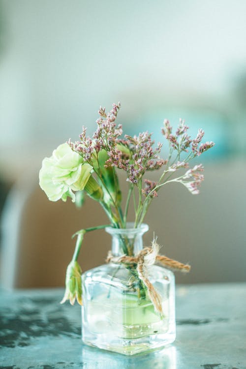 A collection of crystal, glass and ceramic vases set off fresh cut flowers.